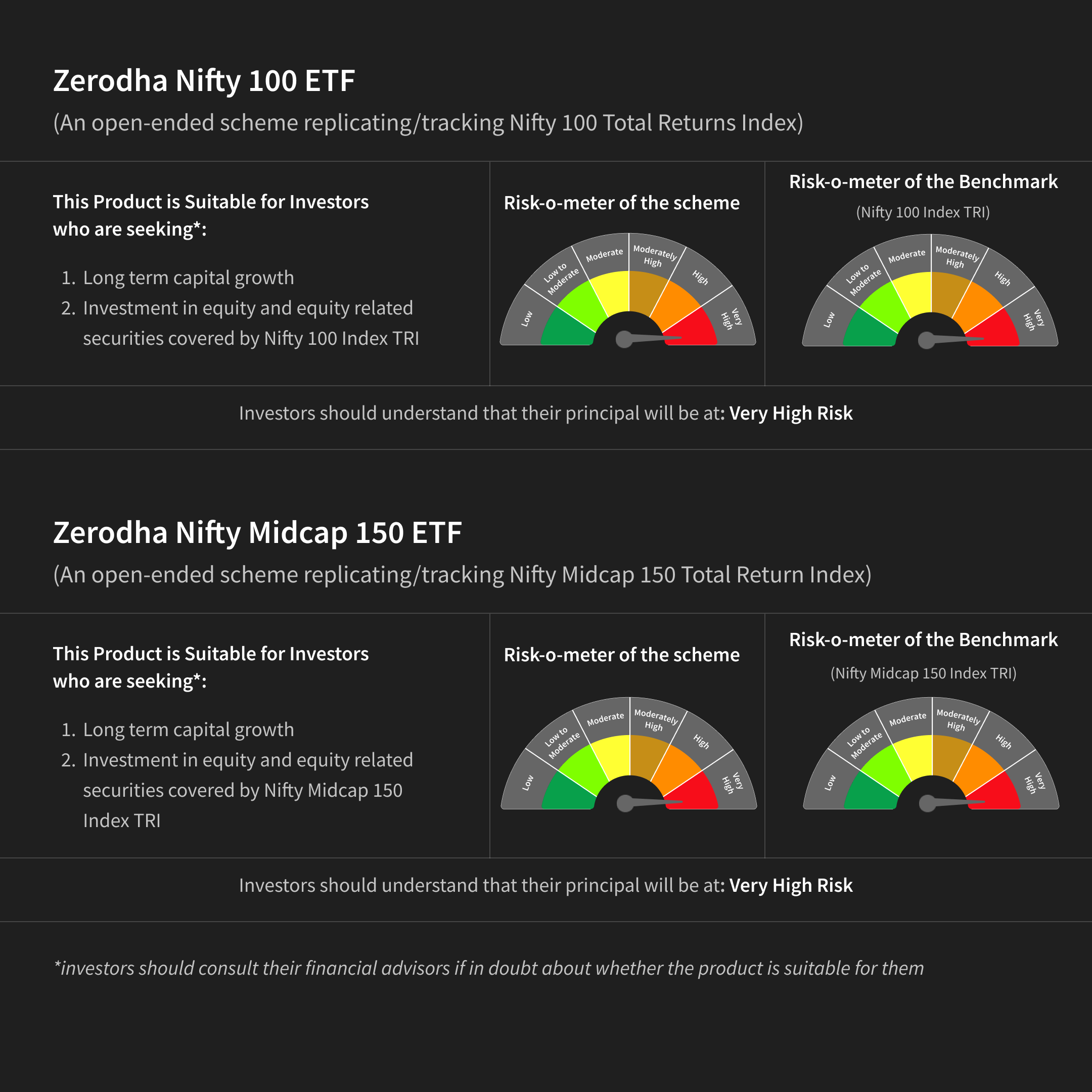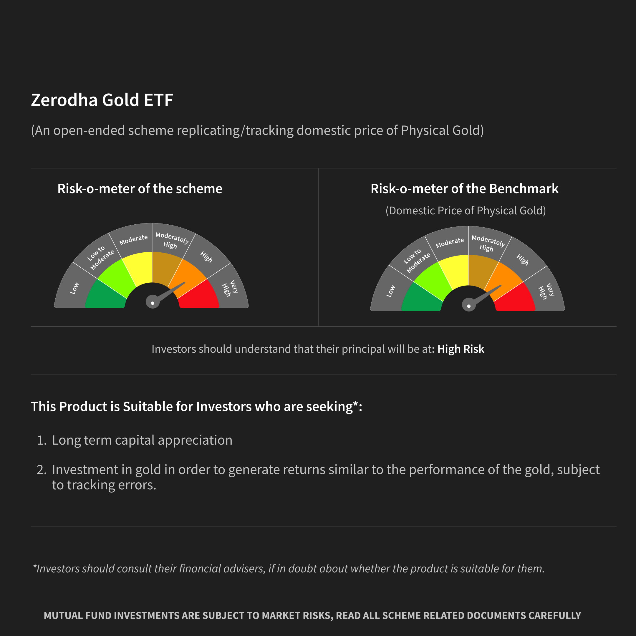 The Model Portfolios created by Zerodha Asset Management Private Limited are provided solely for investors' convenience. Investors are free to invest in individual schemes (ETFs) independently. These combinations neither constitute investment advice nor advertisements of the constituent schemes and have been created without considering any specific investor's risk tolerance, financial requirements, or investment objectives. Investors are strongly encouraged to consult with their financial advisors, mutual fund distributors, or tax consultants to determine suitability before making any investment decisions. These Model Portfolios do not guarantee the achievement of any financial goal or assurance of targeted returns. For comprehensive information on individual schemes, its product label, risk-o-meter, etc., please refer to the respective Scheme Information Documents available on the website of the AMC, viz. www.zerodhafundhouse.com